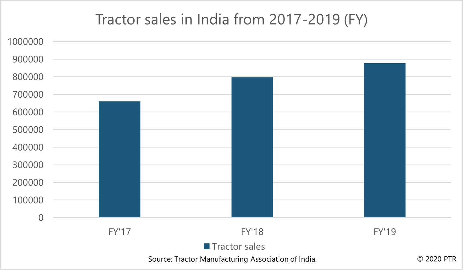 Figure 1: Tractor sales in India from FY 2017 to FY 2019.