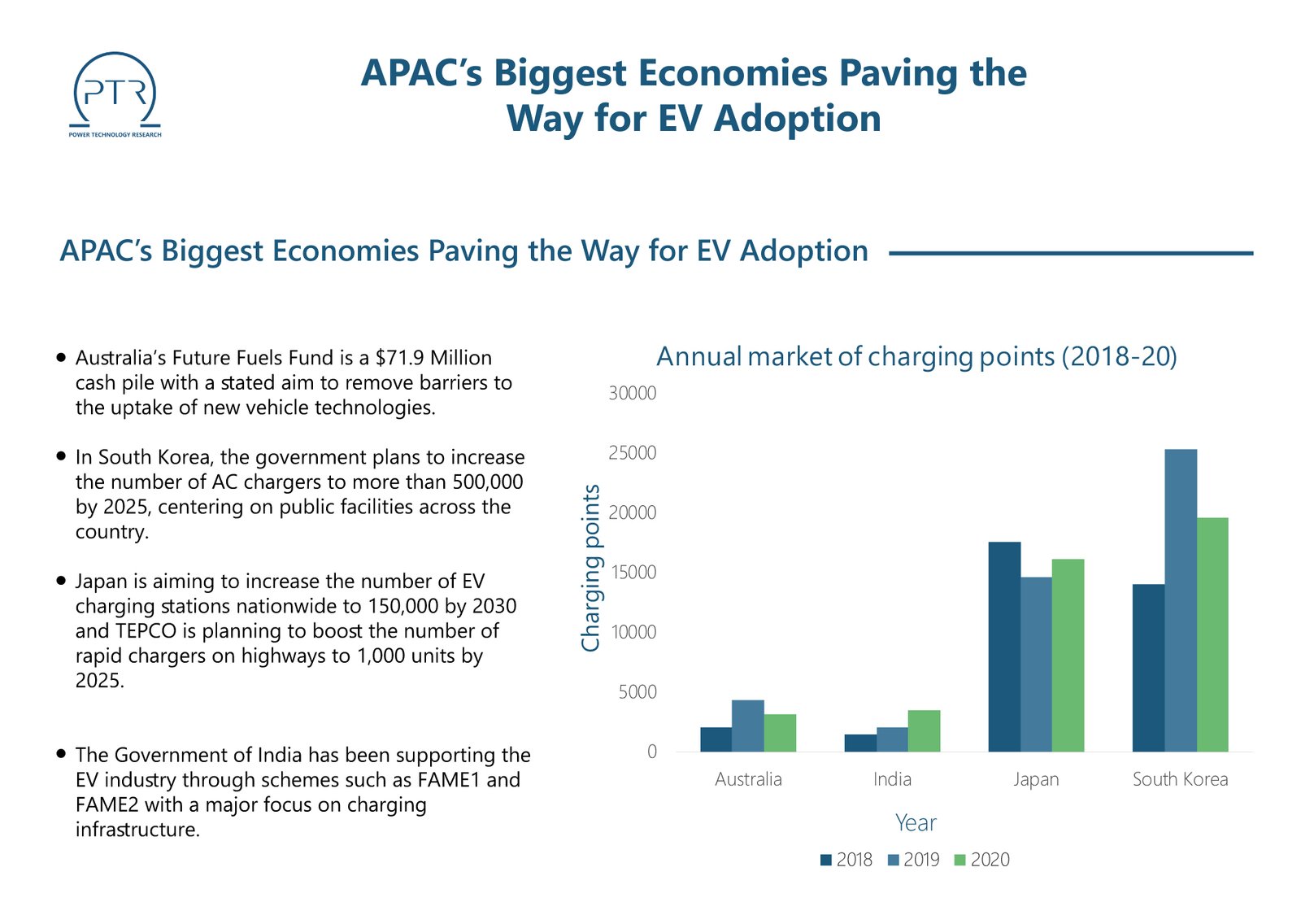 Even though China is the forerunner in the EV charging infrastructure, the rest of the APAC (Asia Pacific) countries are not lagging far behind. Japan and South Korea are also amping up their EV charger deployment rate by incentivizing EVs. While Australia and India may have had a slow start, their recent federal budgets have invested heavily in charging infrastructure to make EVs more readily available.