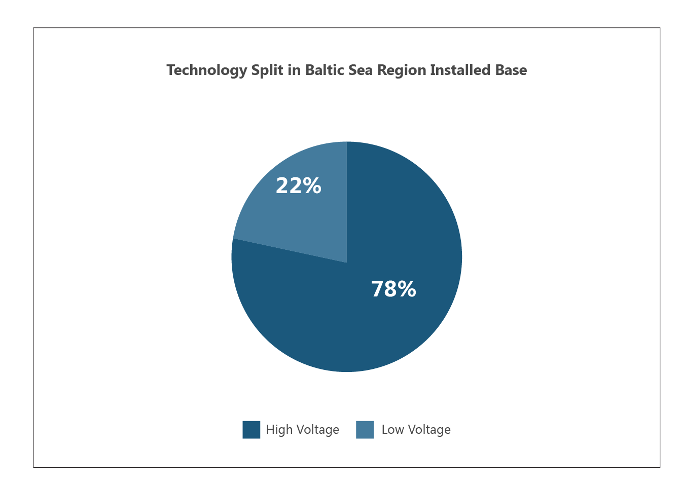 Figure 2: Technology split in Baltic Sea region in terms of installed base.
