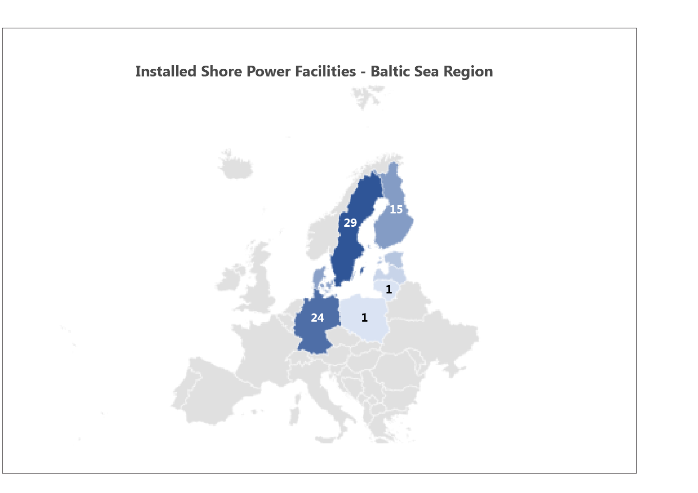 - Currently, more than 90 shore power facilities are available at the major ports of the Baltic Sea region.