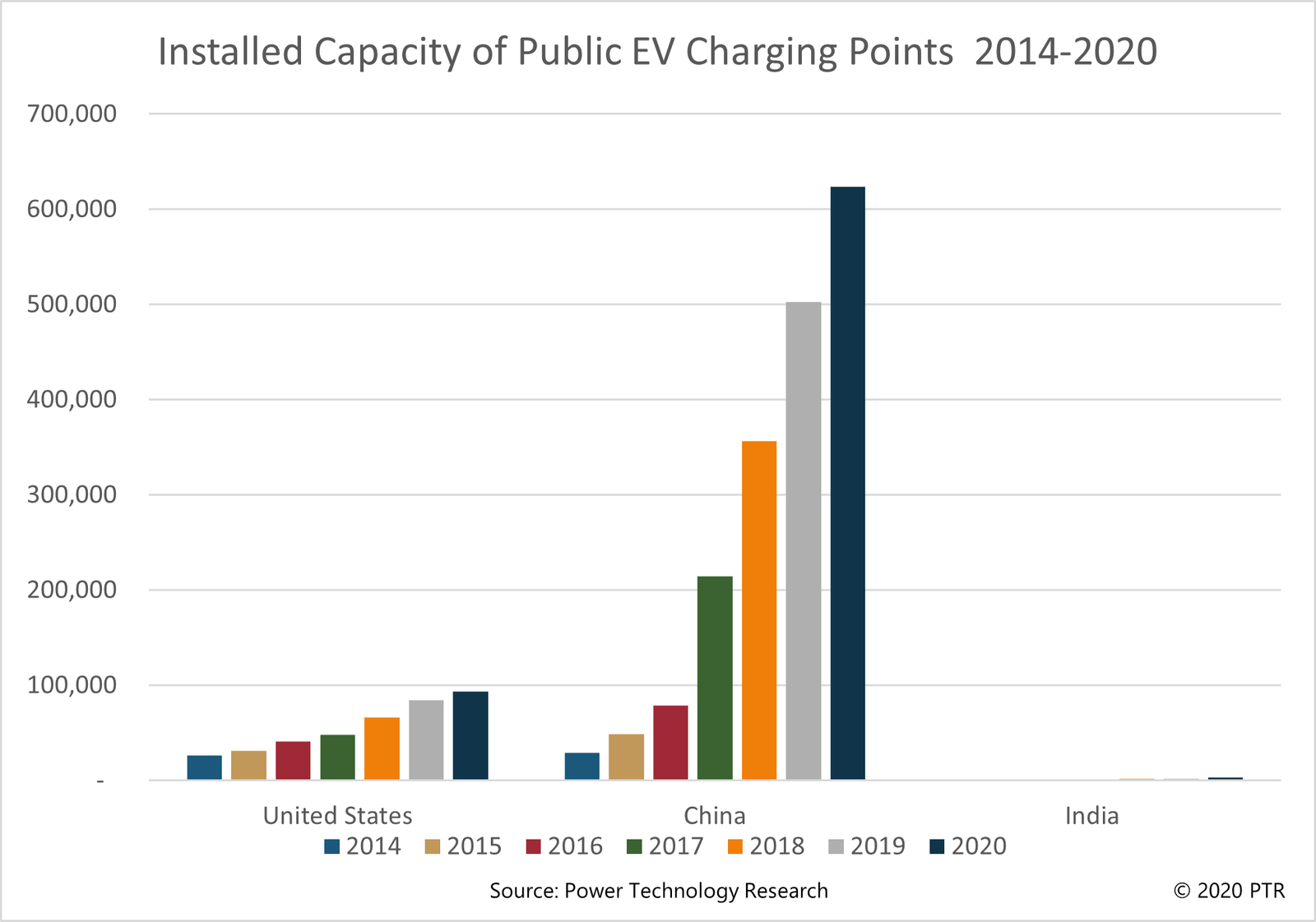Figure 2: Installed capacity of Public EV Charging Points 2014-2020.