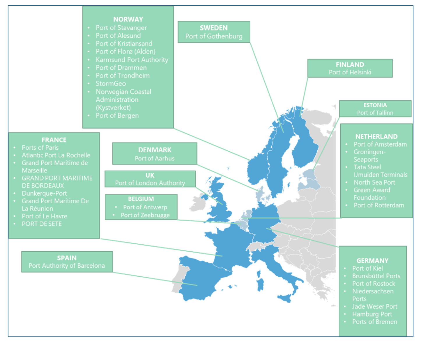 The major European ports which are registered in ESI programme by IAPH are listed in the figure below: